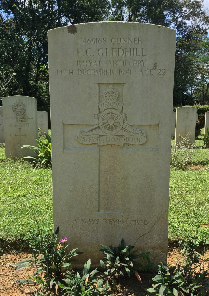 Ernest served in the Royal Artillery as a Gunner in 13 Anti-Tank Regiment. He died on 14th December 1941, aged 22 and is buried at TAIPING WAR CEMETERY, Malaysia.